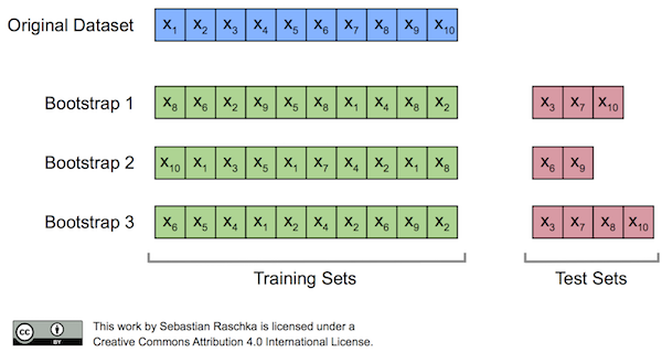 ->이때 사용하는 여러 모델들은 부트스트래핑이라는 샘플링 과정으로 얻은 부트스트래핑 세트를 이용해 학습을 한다.