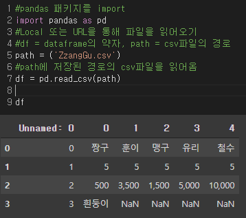 URL을 통해서 파일을 읽어오고 싶다면 path값에 'ZzangGu.csv' 대신 해당 URL을 담아주면 된다.