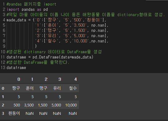 #생성된 dictionary 데이터로 DataFrame을 생성